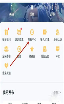第一步、先打开王者营地我的里面,找到观战中心。