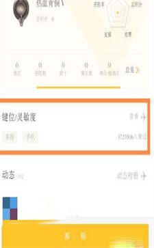 第二步、选择想应的人进入主页下滑,找到键位灵敏度。