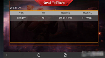 注册时间在掌火上是看不了的,只能够在游戏中进行查看。