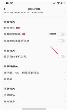 第三步、在隐私设置的中间位置找到型号点击关闭就可以了。