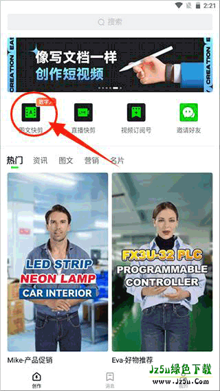 2、闪剪的口播视频自由创作模块让生成视频变得简单,就像发朋友圈一样简单。用户只需2分钟即可生成热门短视频,而且只需要一个人就能够取代传统短视频营销团队,大大节省了人力资源。