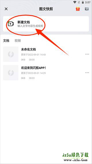2、然后就是点击新建文档,仅需输入文字内容就可以开始制作视频了。