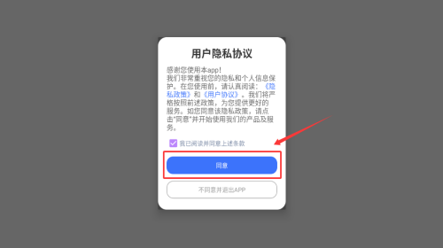 1、启动应用后,请仔细阅读并同意用户协议与隐私政策,这是保障您权益的第一步。