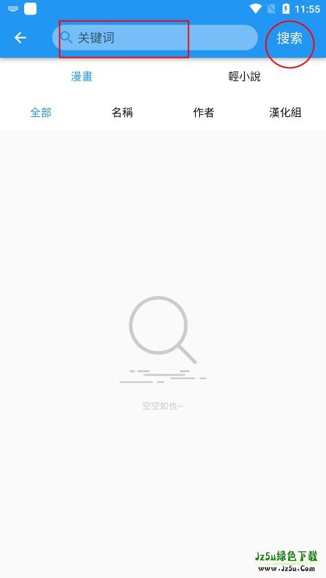 4、进入app之后,如果需要找需要的漫画资源,点击上方的搜索框;
