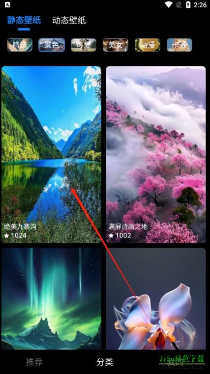 2、智能分类与搜索:壁纸资源按风景、动物、动漫、游戏、明星、抽象艺术等主题精细分类,配合高效的智能搜索功能,助您精准定位所需风格,省去大量筛选时间。