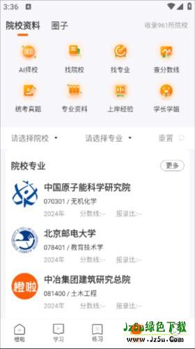 4、院校信息查询:在“院校”相关板块,可以便捷查询到目标院校的详细招生信息、专业实力分析、导师介绍等关键资讯,为考研或深造选择提供权威参考。