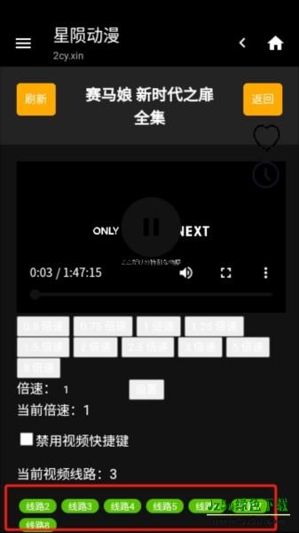 4.在播放页面会展示支持该资源播放的线路,如果当前线路有问题可以直接进行切换