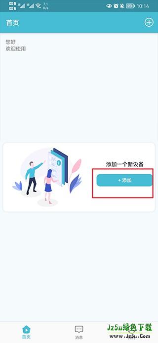 1、首先,在手机上打开小鹰看看监控APP,在应用首页找到并点击“添加设备”按钮。