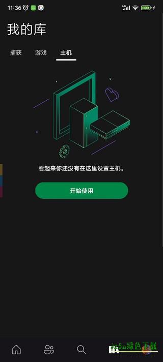 2、然后“我的库”这里就会出现你玩xbox游戏时自动上传的一些成就截图之类,但是还没绑定主机,点击开始使用设置主机