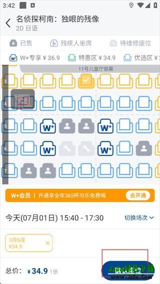 3、确认座位,随后去付款