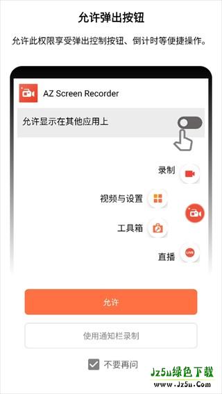 1、打开软件需要先允许此权限享受弹出控制按钮、倒计时等便捷操作