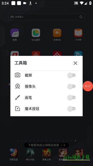 7、此外在录屏的时候点击图标下方的工具箱图标,还可以使用截图、开启摄像头、画笔等功能