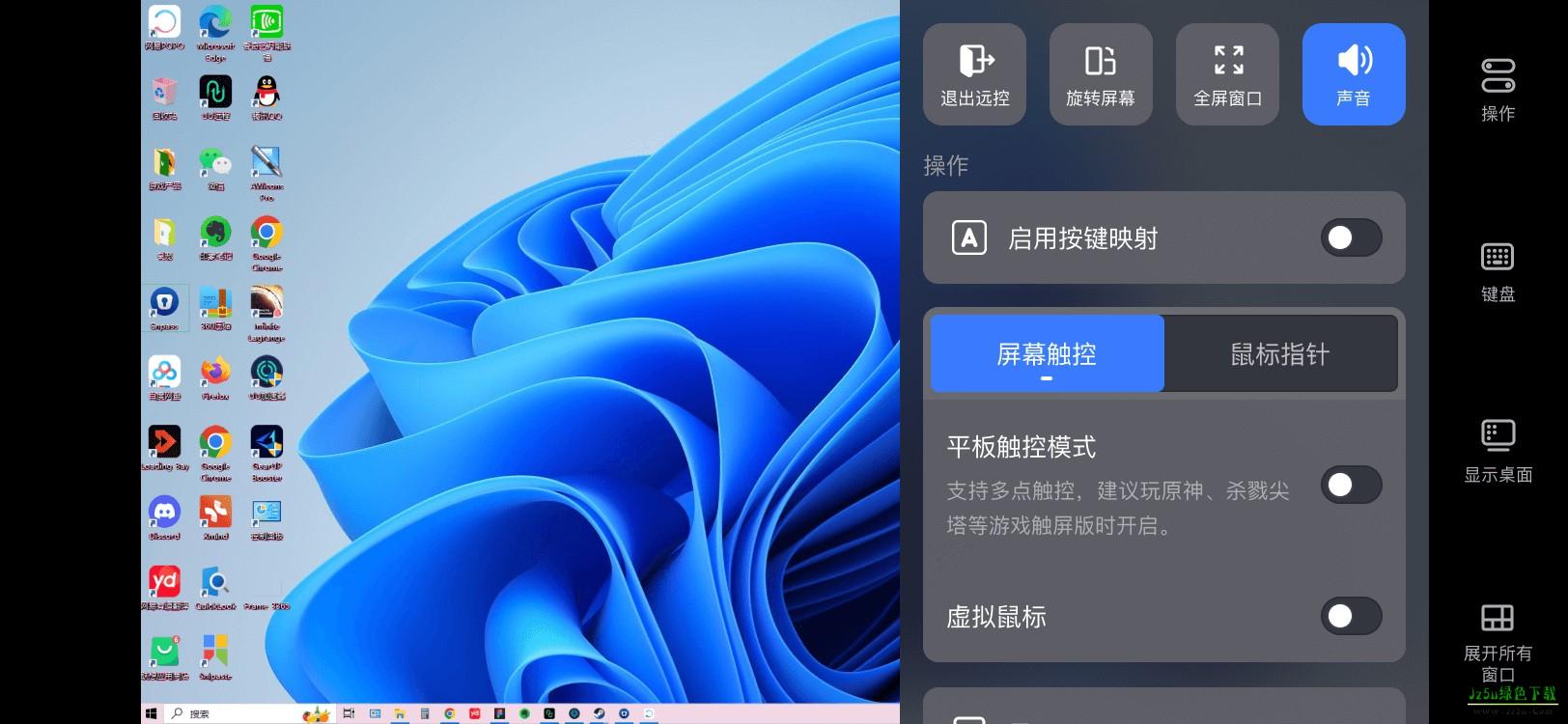 4、使用辅助工具栏:屏幕侧边的悬浮球是功能核心,点击它可以呼出虚拟键盘、切换鼠标模式(左键/右键)、显示桌面、查看所有窗口等实用工具。