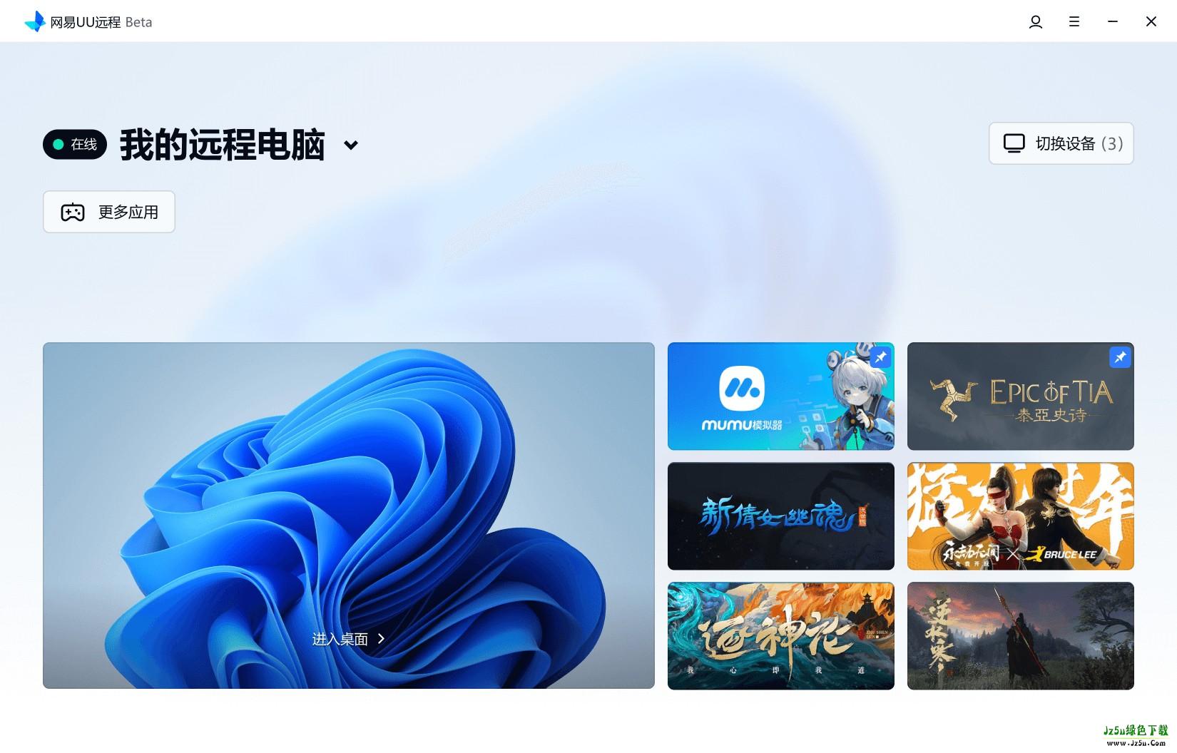 1、在网易UU远程主界面点击【进入桌面】,即可快速建立远程连接;