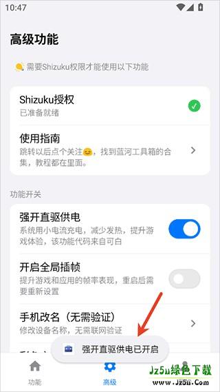 2、而像强开直驱供电功能需要用户使用Shizuku授权激活使用