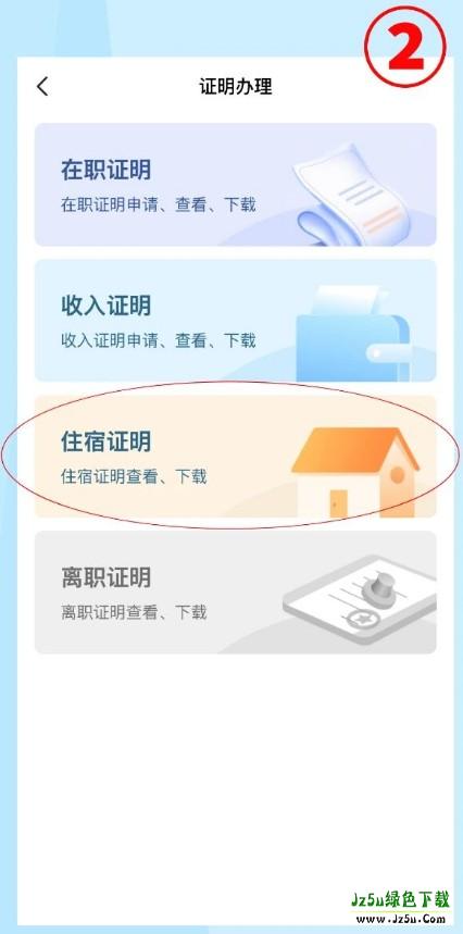 2、在证明办理模块内,选择住宿证明