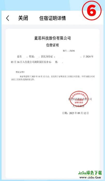 3、然后点击生成住宿证明