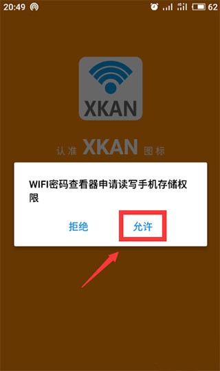 2、允许wifi密码查看器权限,同意授权写入手机内存;