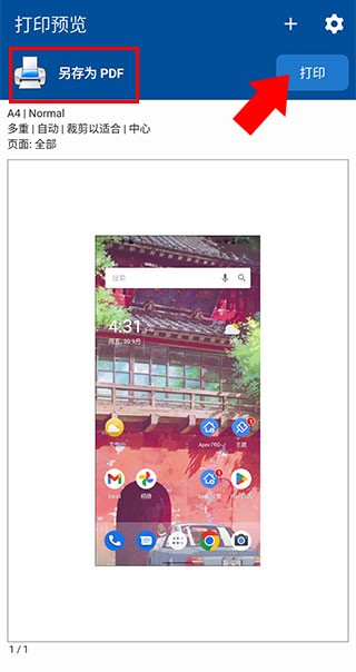 5、如果想要另存为PDF文件,那么先点击打印按钮,之后在选择打印机界面点击另存为PDF按钮,待提示打印机安装完成之后,可以看到预览界面左上角的未选中变成另存为PDF,之后再点击打印按钮即可