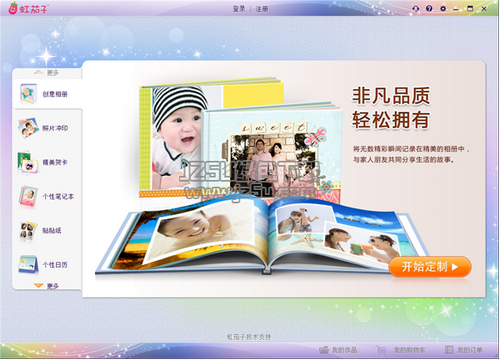 虹茄子创意相册制作软件是一款个性画册DIY定制平台,界面友好、操作简单。虹茄子可以让您使用个人照片轻松制作出极富个性与创意的相册日历等作品,将您的创造力发挥得淋漓尽致。您可以将做好的相册输出为电子相册与家人和朋友分享,您也可以在家远程订购到精美的个性礼物,直接寄送到您的手中。欢迎大家来jz5u体验!