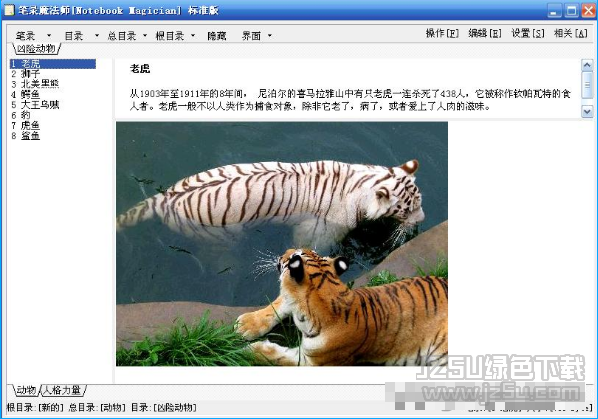 NoteBook Magician是一款非常实用的电脑文件记录查找工具。你还在为没有好的电脑文件记录查找工具而苦恼吗?小编推荐你使用这款软件!该软件能股帮助用户在纷乱如麻的资料和文件中带来秩序,给你带来一种最迅捷强劲的管理方式,系统资源占用量极少,是类似记事本/写字板的实用工具。非常不错的一款软件,如果您有需要可以在jz5u这款NoteBook Magician。