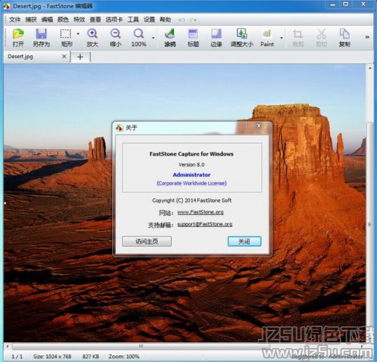 FastStone Capture还包括快速(浏览/编辑图像)的功能,可以点击主窗口的“打开”图标快速打开一幅图片,进行简单的缩放、裁切、旋转、加文字等轻量级的操作。把网页中图片拖到 FastStone Capture 的窗口上,会快速打开图像浏览窗口。