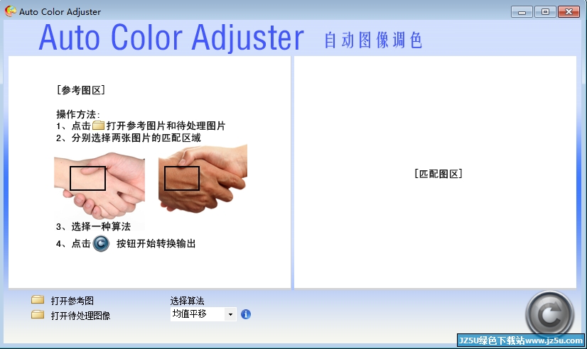 AutoColorAdjuster (自动图像调色)主要针对在日常的图片处理设计工作中,我们在网上下载的图片素材风格相差太多,色调更是差之千里,难以融合。对于不很熟悉photoshop的同学,自动图像调色(AutoColorAdjuster)可以解决此问题,这款工具提供了两种自动调节颜色的算法,使得两张图片的色调一致,可以融合在一起。