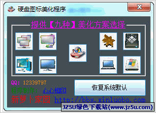 新萝卜家园硬盘图标美化程序提供了九种美化方案选择,软件易用,操作简便,并且支持恢复系统默认图标,请放心使用。