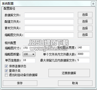 2 打开软件后 在 软件配置 里配置 数据库文件 配置文件夹 素材文件夹 缩略图文件夹 找到对应目录