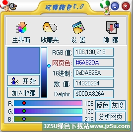 玩转颜色PlayColor是在Visual Basic 5.0 开发平台上开发的类似好色鬼的颜色软件。本软件的特点是拥有友好的界面和小巧的身躯,可以获取屏幕上任何地方的颜色,以RGB,网页,16进制,颜色数值,Delphi颜色输出。内置颜色收藏夹。适用于编程,图象处理,网页制作。