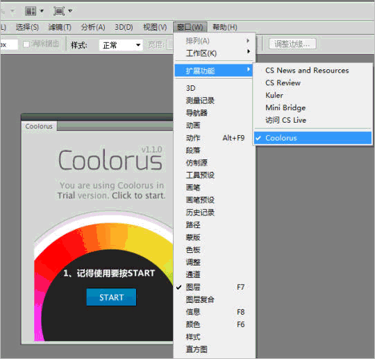 安装完成后,她会躺在窗口-扩展功能里,看到如花似月的coolorus双击即可!