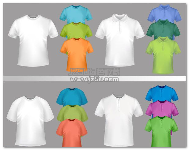 短袖T恤模板矢量素材是一款以短袖T恤模板为主题的服装矢量素材图片。内含多种不同颜色和样式的短袖T恤,有白色的短袖T恤,也有蓝色的短袖T恤,同时还有橙色、绿色等不同色调的短袖T恤,其中还有鸡心领以及开领等样式之分的短袖T恤,详细效果请见下面的JPG缩略图。