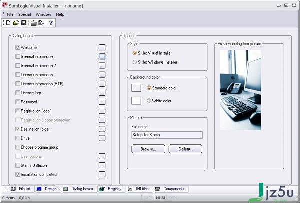 应用Visual Installer 开展设计方案,您能够设计方案出时尚潮流而让人印像刻骨铭心的设定显示屏(设定对话框),该显示屏在安裝全过程中显示信息在后台管理。在设定显示屏上,您能够置放图象,文字,进度条等。还适用响声/歌曲。还可以制做沒有设定显示屏的设定指导。