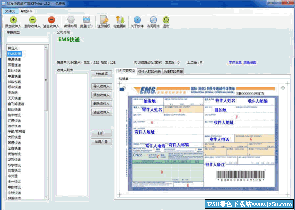 飞翔快递单打印软件6.8.0.103绿色版【支持40种国内国际快递单】