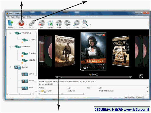 现在,您也可以复制刻录,备份各种游戏光碟片. 虚拟光驱(Virtual Drive)是一套模拟真实光驱的工具软件,它能创建多达23台虚拟光驱或1000个光驱柜,将光盘上的应用软件和资料压缩成一个虚拟光驱文件(*.VCD)存放在指定的硬盘上,并产生一个虚拟光驱图标后告知操作系统,可以将此虚拟光驱视作光驱里的光盘来使用。所以当日后要启动此应用程序时,不必再将光盘放入物理光驱中(没有物理光驱亦可执行),更不需要等待光驱的缓慢启动,只需在虚拟光碟图标上双击,虚拟光碟片立即会载入虚拟光驱中执行,快速又方便。此版为多语言版,包括:中文版、英文版、和日文版,安装时会自动检测操作系统的语言版本并自动安装。