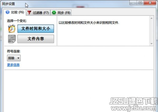 比较设置,默认选择比较文件时间和大小,速度极快,比较文件内容较慢,没有特殊情况不建议选择