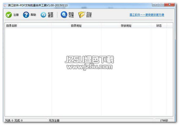 漠江PDF文档批量合并工具是一款可以帮助用户添加合并pdf文档并支持批量合并。软件方便简单,可以将同一目录下的所有PDF合并为一个PDF文档,需要的话可以来jz5u下载使用。