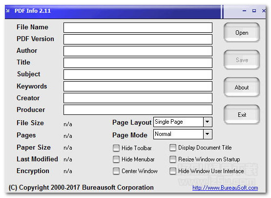 pdf info是一款小巧实用的PDF信息修改工具。这款pdf info(PDF信息修改)可以帮助用户修改pdf文档中的文档属性、修改PDF显示的状态等,非常方便用户的使用。同时软件还能够隐藏状态栏、隐藏属性页,允许您打开多个 PDF 文档并查看其详细的信息,需要的朋友欢迎前来JZ5U使用。