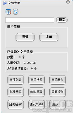 文管大师是一款功能强大简单易用的文件管理工具。该软件具有全盘扫描、急速搜索、文档瘦身等特点,支持各种类别文件的分类管理以及相关操作,Windows资源管理器的树状类别显示,自动建立分类文件夹的独特管理方式,多种文件导入与输出功能,内嵌云共享与邮件系统、文档能实时共享与邮件发送给好友。欢迎大家来jz5u下载体验!