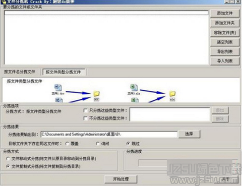 绿叶文件分拣机是一个非常好用的文件分拣工具。绿叶文件分拣机可以将一堆文件中吧名称类似或者类型相同的文件复制或者移动到文件夹中,以便于你的统一管理。文件分拣机可根据文件类型把同一类型的文件批量复制或移动到相应的文件夹中,如把磁盘上所有MP3文件复制或移动到“MP3”目录,把JPG图像文件归类到“JPG”目录;欢迎大家来jz5u下载体验!