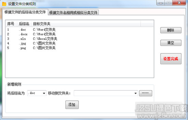 文件自动整理分类器是一款能在windows下自动整理文件的智能软件。文件自动整理分类器按照用户选定的模式,将杂乱的文件自动分发到相应的文件夹。欢迎大家来jz5u体验!