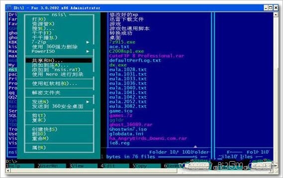 FAR manager 是一款可以再dos命令扩展里使用鼠标的应用工具,可以对文件任意的复制、移动、删除、查看、编辑等操作,也可以对目录进入操作,支持长文件名和中文文件名,使用极其方便。