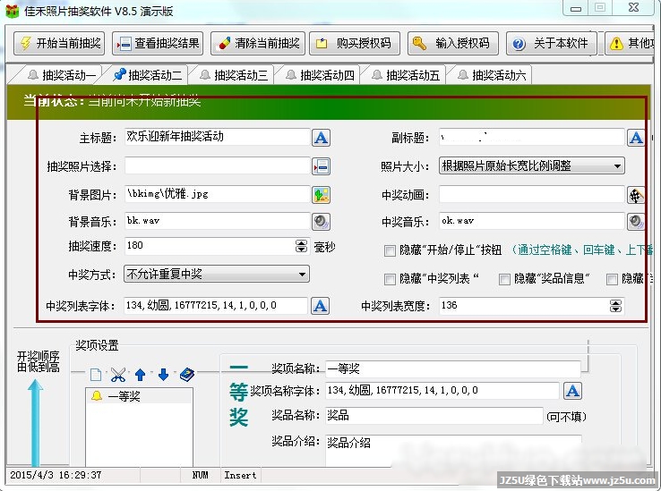 1、打开工具,首先设置抽奖的活动内容及规则。