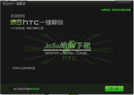 绿豆HTC一键解锁支持HTC全系列安卓机型,请使用USB 数据线连接手机与电脑,连接前请打开手机的 USB调试模式。