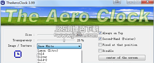 theaeroclock是一款小巧且功能强大的桌面时钟软件。theaeroclock支持缩放、透明度和更换皮肤。theaeroclock除了这些功能还可以很直观的看到时间,非常的方便。本站提供theaeroclock,有需要的朋友快来吧!