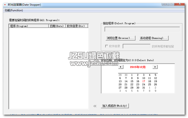 点击浏览位置或活动进程选择程序,然后设定驻留日期,点击加入或修改加入左侧列表即可时光驻留。