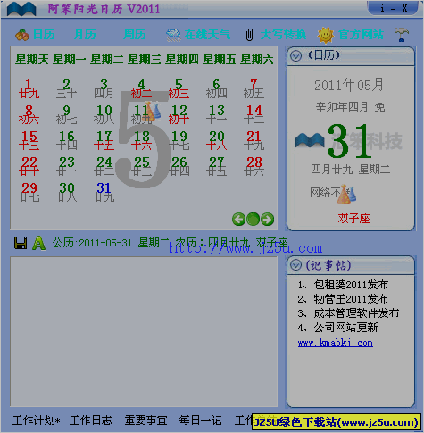 飞雪桌面日历V6.3绿色特别版_多功能桌面万年历