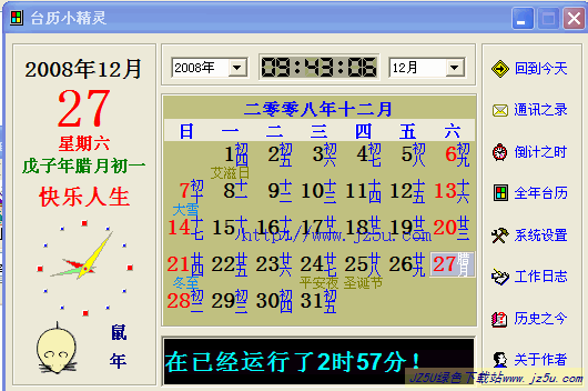 实用万年历_日梭万年历2008 Beta绿色版【公元1583-5582年月历】