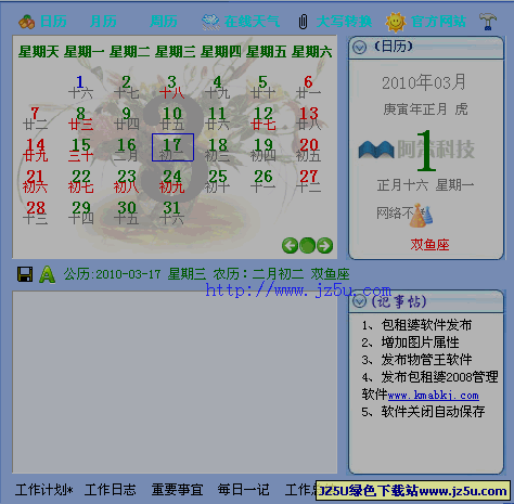 飞雪桌面日历V6.3绿色特别版_多功能桌面万年历