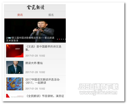 全民朗读app是一款专业的朗读爱好者应用软件。朗读爱好者可以通过该软件提高自己的朗读能力,还能结交众多共同兴趣爱好者,交流朗读经验,非常好用。喜欢的用户可以到jz5u来下载全民朗读app。